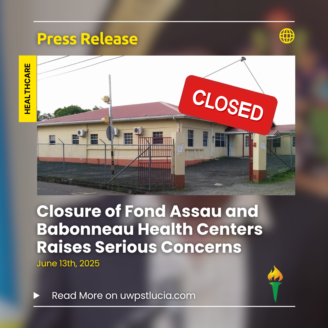 The United Workers Party Babonneau Constituency Branch expresses deep concern over the recent closure of both the Fond Assau and Babonneau Health Centres without adequate public notice or contingency planning.