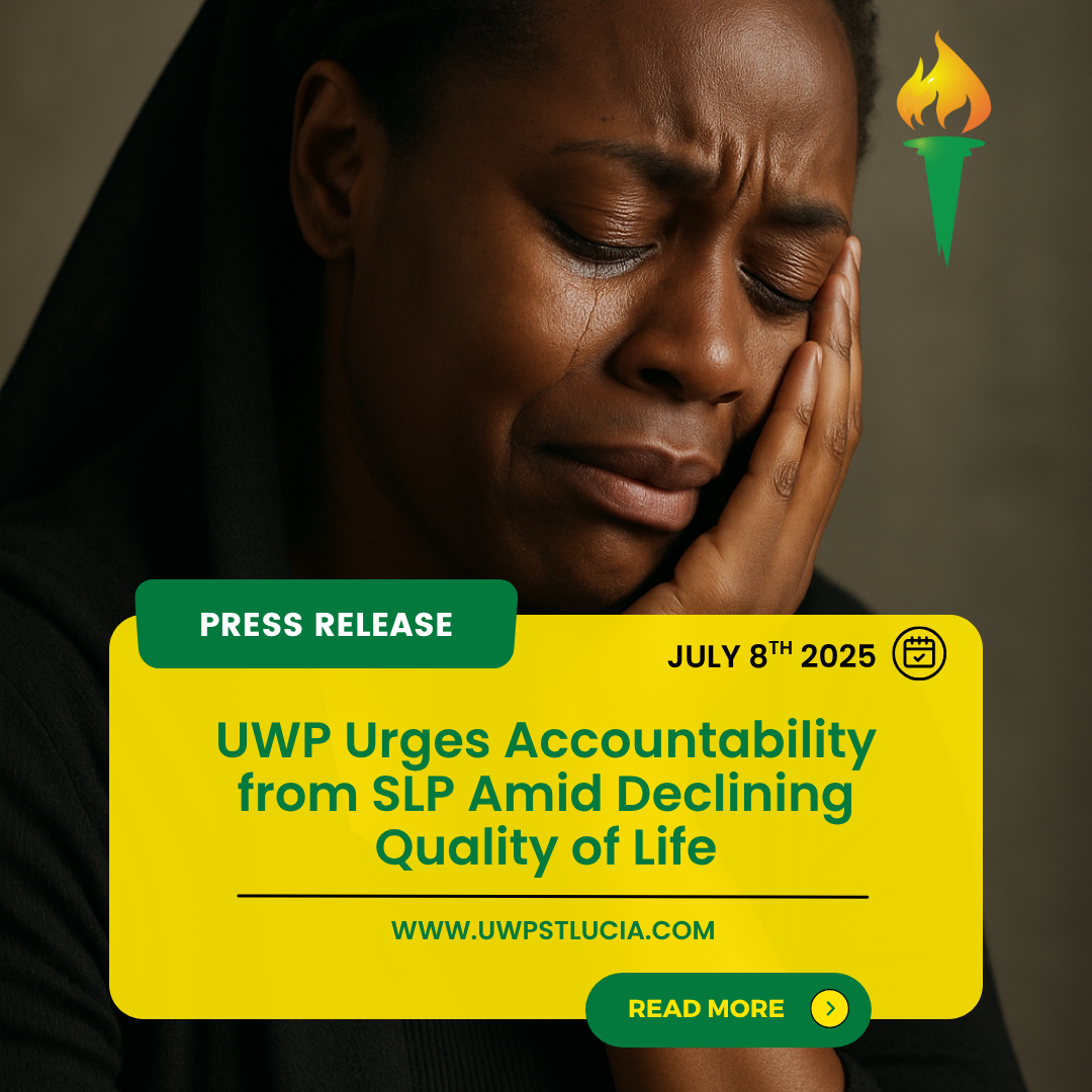 The United Workers Party (UWP) on Sunday, July 6 highlighted the alarming decline in quality of life under the Saint Lucia Labour Party (SLP) administration. The UWP is urging Saint Lucians to honestly reflect on their current conditions and advocate for decisive change at the next general election.